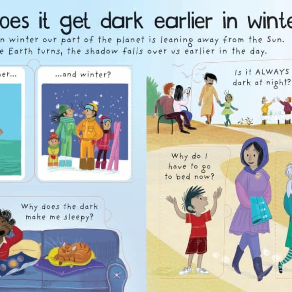 “First Questions & Answers: Why is it Dark at Night?” este o carte din seria Usborne care urmareste sa raspunda la intrebarile frecvente ale copiilor in moduri captivante si informative. Aceasta carte se concentreaza in special pe intrebarea “De ce este intuneric noaptea?” – o intrebare pe care multi copii o pun pe masura ce incep sa inteleaga lumea din jurul lor.