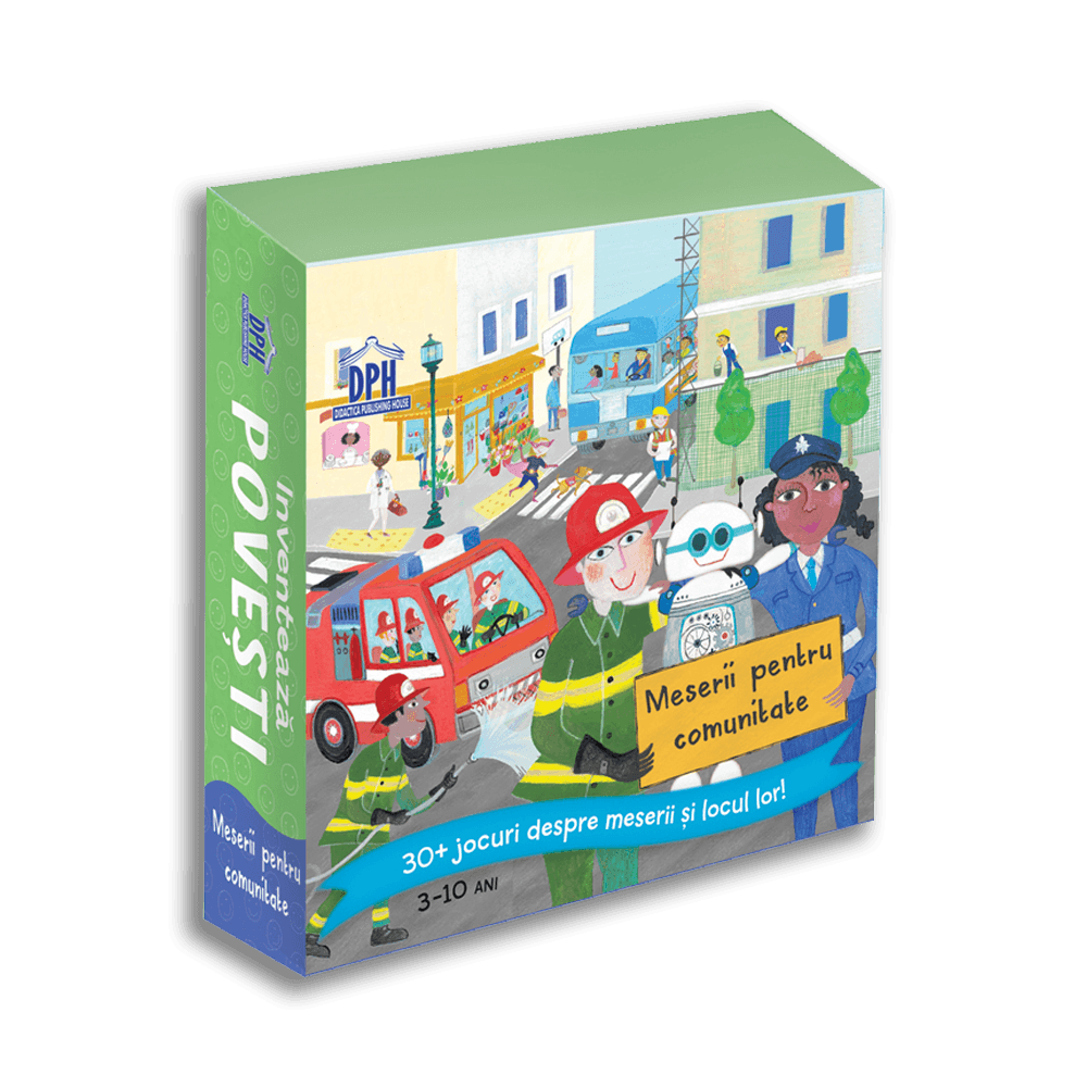 Stimuleaza creativitatea copiilor cu ajutorul acestui set de 36 de jetoane pentru inventarea povestilor! Fiecare jeton reprezinta o meserie din comunitate, oferind oportunitatea de a crea povesti unice si captivante. Acest joc nu doar ca dezvolta imaginatia, dar si abilitatile de comunicare si colaborare ale celor mici. Ideal pentru mamici care doresc sa incurajeze lectura si creativitatea in limba engleza!
