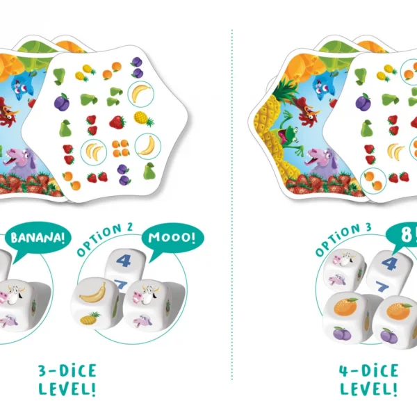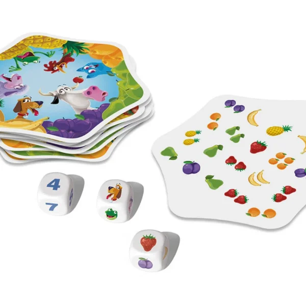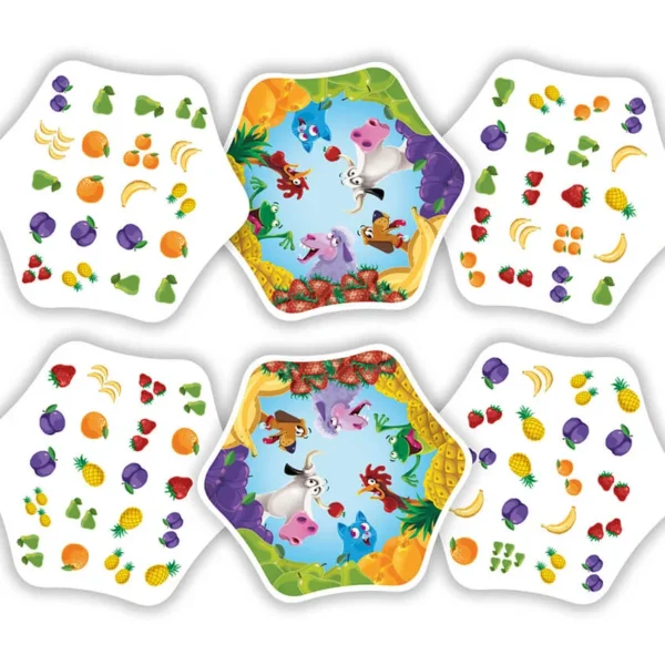 Jocul ii invita pe participanti sa sorteze fructe impreuna cu animalutele de la ferma. Fiecare jucator arunca zarurile, apoi cauta fructele potrivite pe cartile provocare. Daca fructul de pe zar se regaseste pe carte, trebuie imitat sunetul animalului corespunzator, ceea ce adauga un plus de amuzament si surpriza.