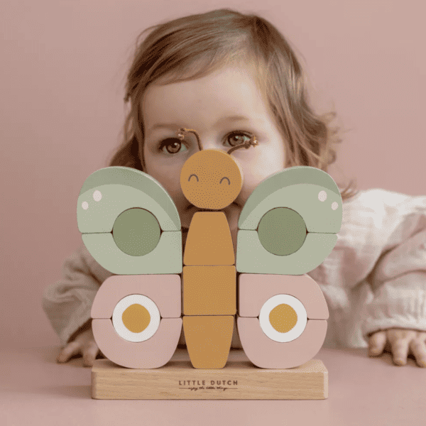 Descopera magia stivuirii si frumusetea naturii cu “Jucarie din lemn FSC pentru stivuire – Fluture” de la Little Dutch. Un cadou minunat care combina invatarea cu distractia!