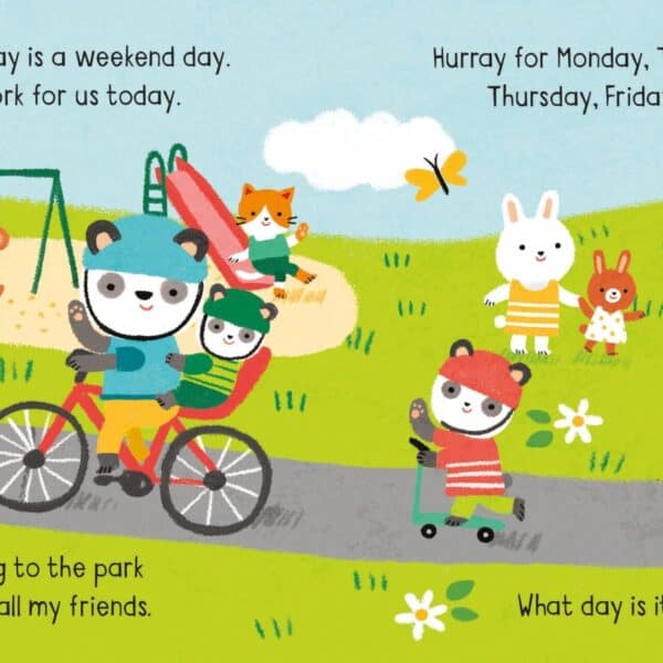 “Little Board Books: Days of the week” este o carte pentru copiii mici, care ii invata despre zilele saptamanii. Fiecare pagina prezinta o zi a saptamanii, cu ilustratii colorate si detalii interesante.
