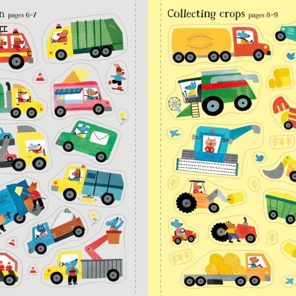 “Little First Stickers Tractors and Trucks” este o carte interactiva pentru copii, publicata de Usborne. Cartea ofera o serie de activitati interesante si distractive pentru cei mici. Copiii pot plasa autocolante pe diferite scene, creand astfel propriile lor povestiri cu tractoare si camioane. Aceasta ajuta la dezvoltarea abilitatilor motorii fine, a creativitatii si a gandirii logice. Fiecare pagina contine diferite scene cu vehicule, iar copiii pot alege autocolantele corespunzatoare pentru a le completa. Aceasta este o modalitate distractiva de a introduce copiii in lumea vehiculelor mari.