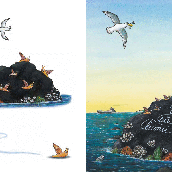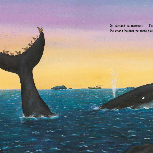 Aceasta e povestea c-un melc ce-a fost odata Si o balena mare, albastra, cocosata. Aceasta-i stanca neagra ca fumul de vapor Si-acesta este melcul cel iute de picior. El se tara pe stanca cu cochilia-n spate Si se uita la mare, la navele-ancorate… Si cum se uita, smiorcaind, a oftat: — Ce adanca e marea, si pãmantul, ce lat! Ce-as porni-n larg si eu! a oftat el din greu.