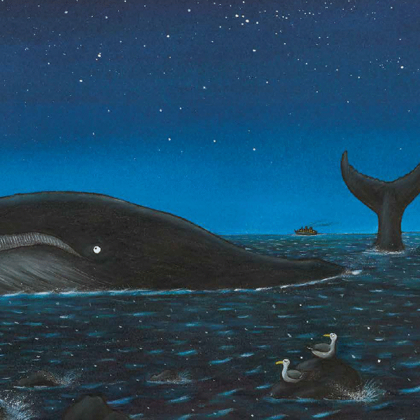 „Ce adanca e marea, si pamantul, ce lat” spune micul melc din aceasta poveste. Cum sa stai toata ziua lipit de o stanca oarecare de pe malul marii, cand sunt atatea lucruri de descoperit? Trebuie sa fie o cale sa vezi lumea, chiar daca esti doar un melc, iar eroul nostru o gaseste pe cea a prieteniei. Alaturi de o uriasa balena, strabate marile in lung si-n lat. Dar chiar si cineva mare si puternic, cum e balena, poate sa aiba odata nevoie de ajutor. Cand balena, surprinsa de reflux, esueaza pe o plaja, tocmai melcul cel mic e cel care ajuta decisiv la salvarea ei, alaturi de copiii dintr-o scoala din apropiere. Mari sau mici, marunti sau puternici, lumea cea minunata care ne inconjoara e a tuturor.