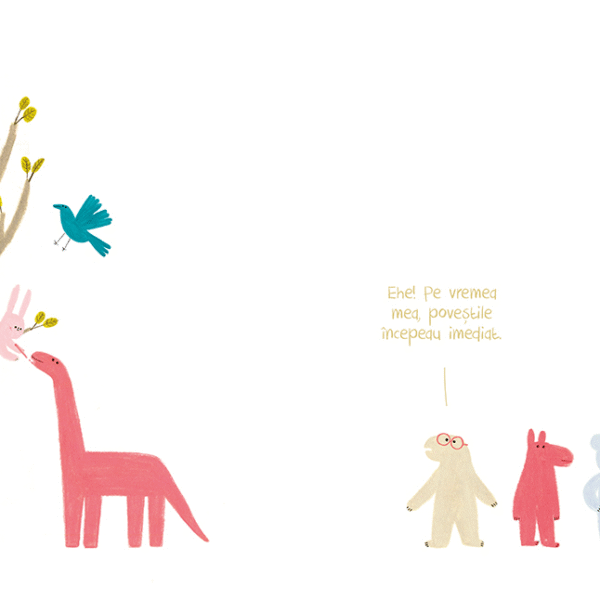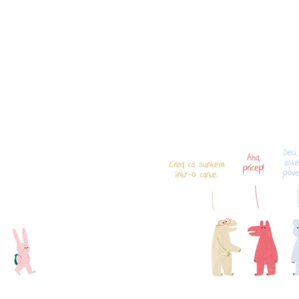 Patru creaturi foarte rabdatoare asteapta sa inceapa povestea. Dar un iepuras e mai putin rabdator. De ce sa astepti cand ai o imaginatie fara margini si un ghiozdan plin cu creioane colorate? Povestea o poti incepe chiar tu.