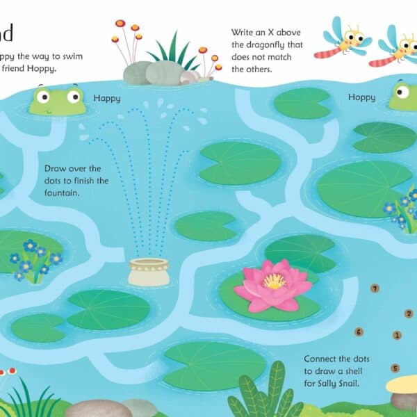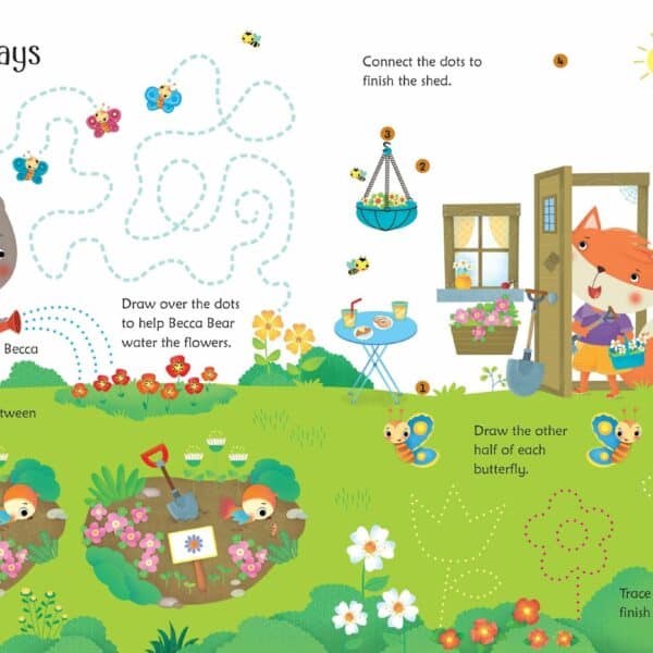 Cartea “Wipe-Clean Garden Activities” include o serie de jocuri, puzzle-uri, activitati de desenat si de numarat, toate avand ca tema gradina. De la identificarea insectelor pana la urmarirea labirinturilor de flori, activitatile variaza pentru a mentine interesul copiilor. Superficiea paginilor permite stergerea si reutilizarea, fiind ideala pentru practicarea abilitatilor si invatarea prin repetitie.