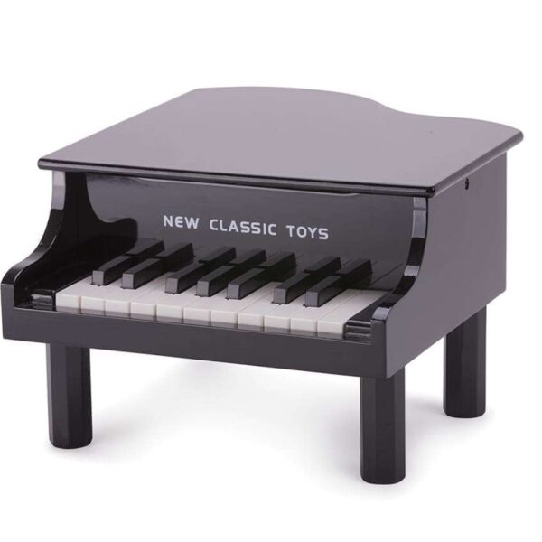 Acest pian negru din lemn este perfect pentru micii muzicieni care iubesc sunetele.
