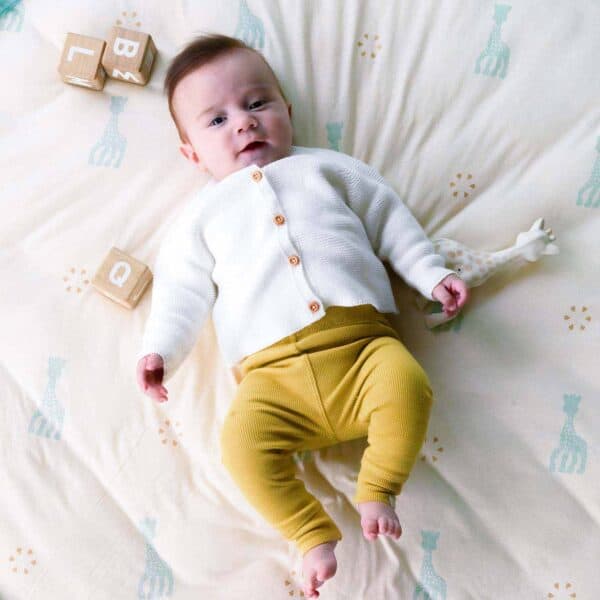 Saluta-o pe girafa Sophie! Bebelusul tau va adora aceasta salteluta pentru copii imprimata cu girafe.