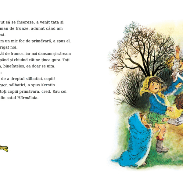 In satul Harmalaia, primavara este o sarbatoare pe care copiii o traiesc din plin. Hoinaresc pe pajisti si prin gradini, topaie prin balti, se catara pe garduri sau pe magazia de lemne, fugaresc pisica, aluneca prin noroiul de pe ulite, cad (din intamplare) in paraias — oriunde ii poarta pasii, e ceva interesant de facut sau de vazut. La fel ca pentru mieii fara astampar de pe pasune sau manzul abia nascut, si pentru copiii din satul Harmalaia lumea e noua, proaspata si luminoasa. Va fi un an bun.
