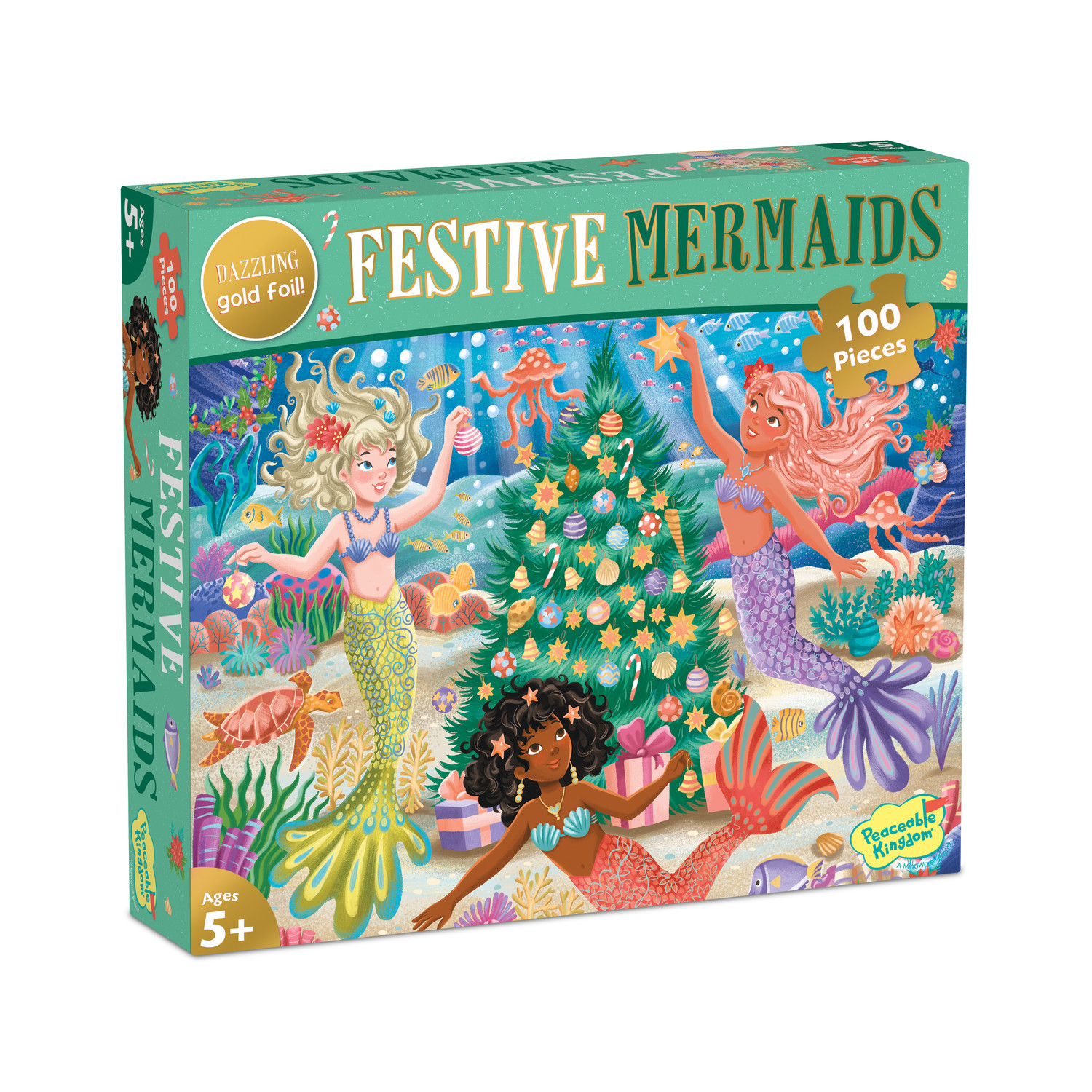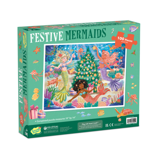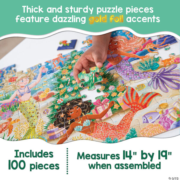 Puzzle-ul Craciunul Sirenelor este cadoul perfect pentru micutele pasionate de sirene. Piesele cu accente aurii adauga o nota de stralucire speciala, iar imaginea finala dezvaluie o scena subacvatica festiva, bogata in detalii, cu sirene si alte creaturi marine impodobind bradul de Craciun.
