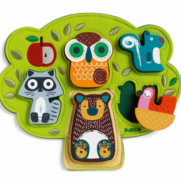 Puzzle cu animale Oski Oski este un puzzle cu tematică forestieră. O bază din pâslă imprimată, plăcută la atingere, în formă de copac, cu detalii brodate și 5 animale din lemn de fixat prin încastrare. Piese din lemn robuste, ușor de manevrat. Animalele stau în picioare singure pentru o distracție și mai mare. Dezvoltă abilitățile motorice fine. Cutie colorată, din carton gros, pentru o depozitare ușoară. Dimensiune puzzle 25x21x2,2 cm. Conținut: puzzle cu 5 piese din lemn și bază din pâslă. Vârsta recomandată: +12 luni. Confecționat din lemn și fetru, cu vopsele non-toxice certificate FSC®. AVERTISMENT: Contraindicat copiilor sub 18 luni. A se utiliza sub supravegherea unei persoane adulte. Producător: Djeco , Franța.