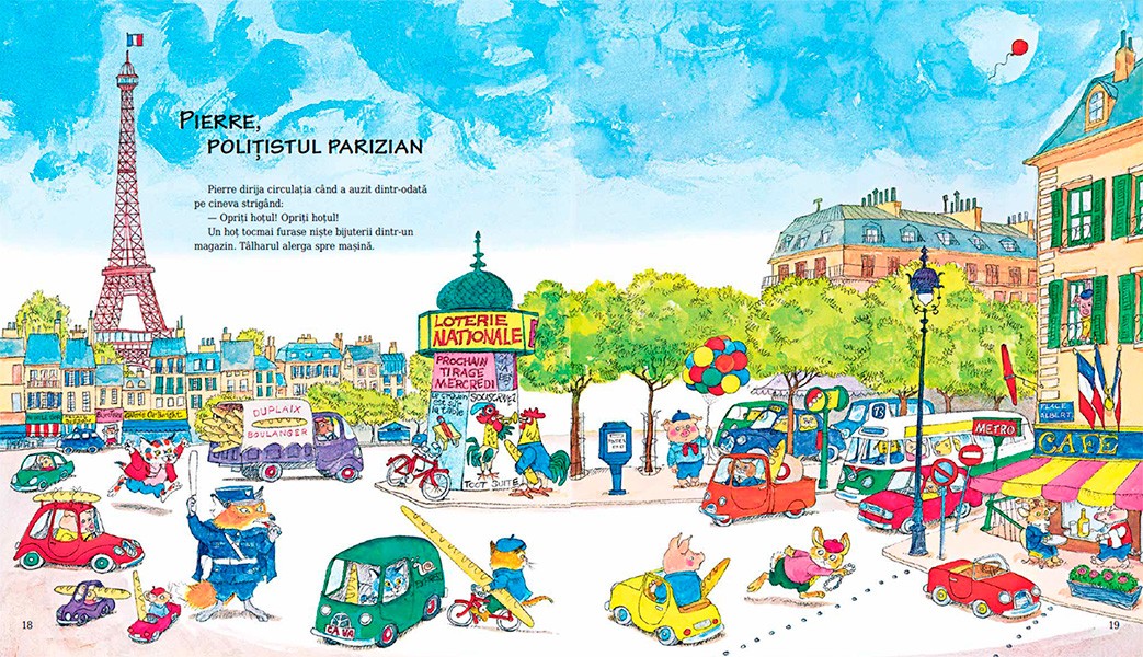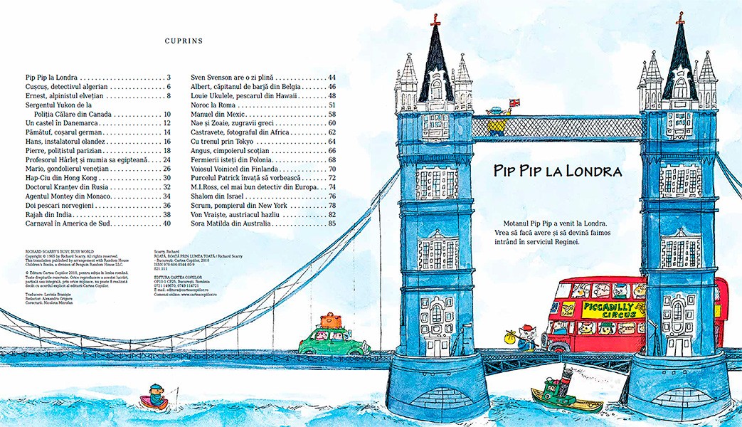 In lumea sa cea vesela, Richard Scarry ne poarta pe toate continentele si ne invita sa cunoastem o multime de tari si orase prin intamplari pline de umor si ilustratii care abunda in detalii.