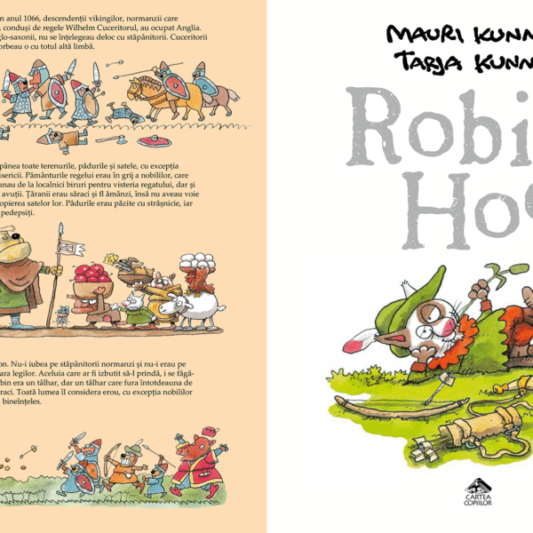 „Robin Hood” a lui Mauri Kunnas este o versiune originala şi plina de umor a legendei celebrului arcaş din folclorul englezesc. Ceea ce-i va atrage cel mai mult pe copii este faptul ca toate personajele acestei poveşti sunt intruchipate de animale: pisici, caini, purceluşi, bursuci… Iar pentru vestitul Robin Hood autorul a facut cea mai inspirata alegere: eroul nostru este un motan simpatic şi neastamparat cum de multa vreme nu s-a mai vazut intr-o carte pentru copii.