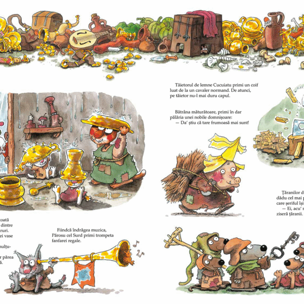 Povestea plina de umor a lui Mauri Kunnas cuprinde şi o mica lecţie de istorie. Cititorii pot afla despre mai multe episoade din istoria Angliei, cum ar fi cucerirea normanda sau domnia bunului rege Richard Inima-de-Leu. Cartea este imparţita in opt capitole, fiecare reprezentand o poveste de sine statatoare, dand astfel posibilitatea celor mici sa prelungeasca placerea lecturii de-a lungul mai multor seri.