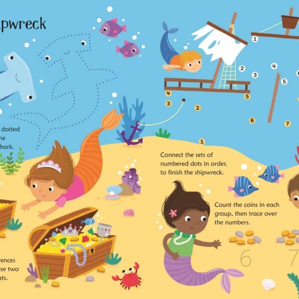 Intalneste-i pe Coral, Blue si prietenii lor in timp ce rezolvi puzzle-uri in lumea lor subacvatica. Foloseste pixul special inclus pentru a termina imaginile de tip puncte puncte, pentru a gasi diferentele, a rezolva labirinturi si a urma liniile punctate, apoi sterge paginile si repeta. Aceasta carte distractiva este o modalitate perfecta pentru copiii mici de a dezvolta abilitati esentiale de numarare, observare si control al pixului.