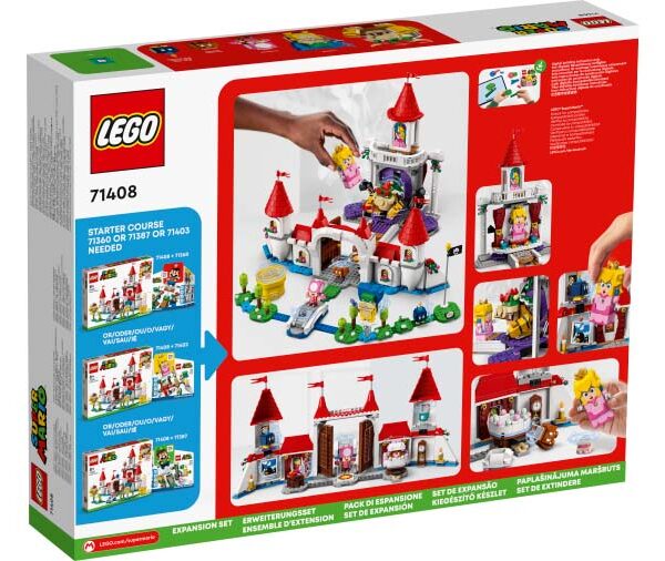 Adauga un loc legendar la universul tau LEGO Super Mario cu setul de extindere Castelul lui Peach (71408). Sunt atat de multe lucruri de explorat, si atat de multe moduri de a obtine banutii digitali cu figurinele interactive LEGO Mario, LEGO Luigi sau LEGO Peach (disponibile separat).