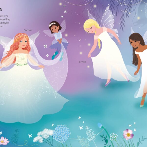 Utilizați autocolantele din această carte magică pentru a îmbrăca păpușile pentru diferite nunți de zână. Ajutați domnișoarele de onoare, băieții de ceremonie și fetele florilor să îmbrace o mireasă zână pentru ziua ei specială, alăturați-vă unei procesiuni de nuntă în care o zână călărește un unicorn, alăturați-vă zânelor care dansează la o nuntă de iarnă și bucurați-vă de multe alte sărbători.