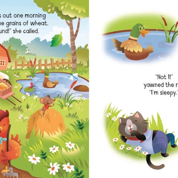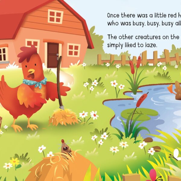 The Little Red Hen este o carte pentru copii din colecția Usborne, creată pentru a transforma momentul lecturii într-o experiență interactivă și memorabilă. Prin ilustrații expresive, text accesibil și elemente care implică activ copilul, cartea stimulează atenția, limbajul, imaginația și dorința de explorare.