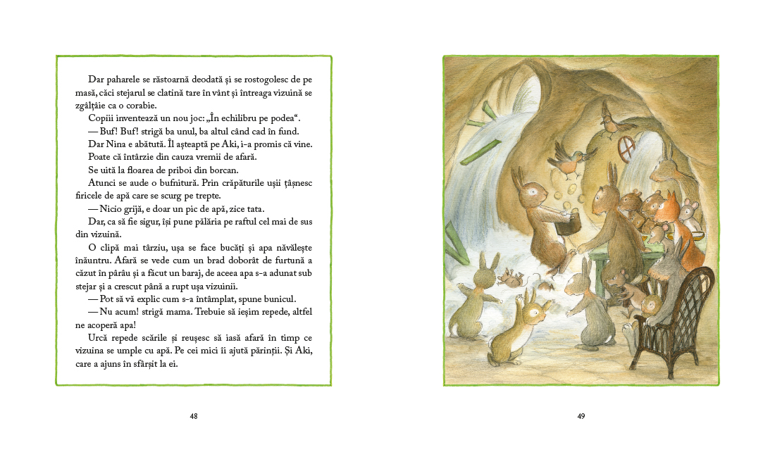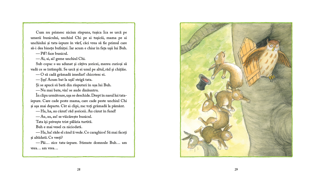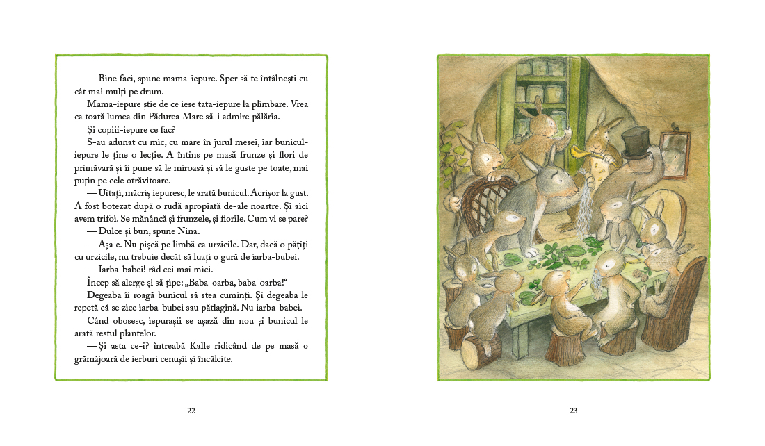 In Padurea Mare, zilele de vara se perinda in tihna, ca norii pufosi purtati usor de vant pe cer. Puii animalelor cresc, invata si sunt mereu gata de joaca – doar asa se invata cel mai bine, se stie. Parintii isi vad de treburi, iar bunicii deapana amintiri din tinerete.