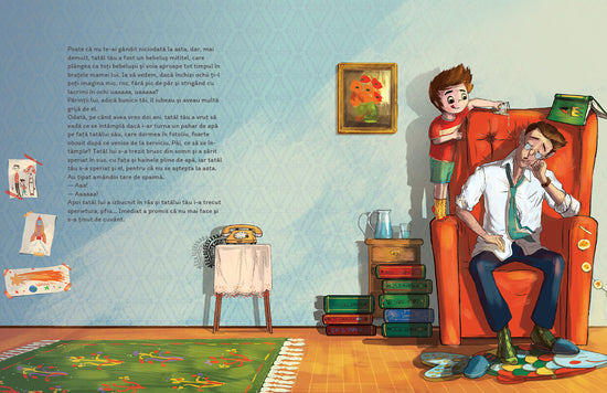 O carte in care tati nu e supererou, ci om ca toti oamenii, cu emotii, reactii, furii, frici si tristeti, dar mai ales cu multa iubire, chef de joaca, grija pentru familia lui si dorinta de a le fi mereu alaturi.