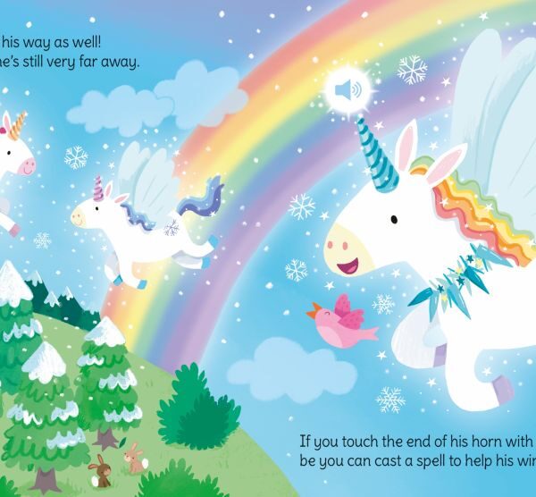 Tu esti cel care face magia sa se intample in aceasta carte sonora unica. De fiecare data cand atingi bagheta de una dintre punctele speciale de pe pagini, vei auzi cum unicornii prind viata. Cu muzica frumoasa si sunete evocatoare, aceasta este o lume interactiva de care poti face parte in timp ce lansezi vraji pentru a invita toti unicornii la petrecerea de la final.